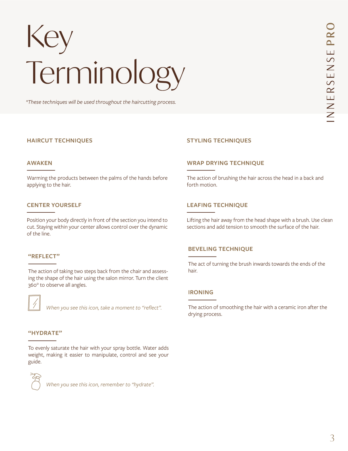 Excerpts from haircutting curriculum with custom icons and headsheet graphics.