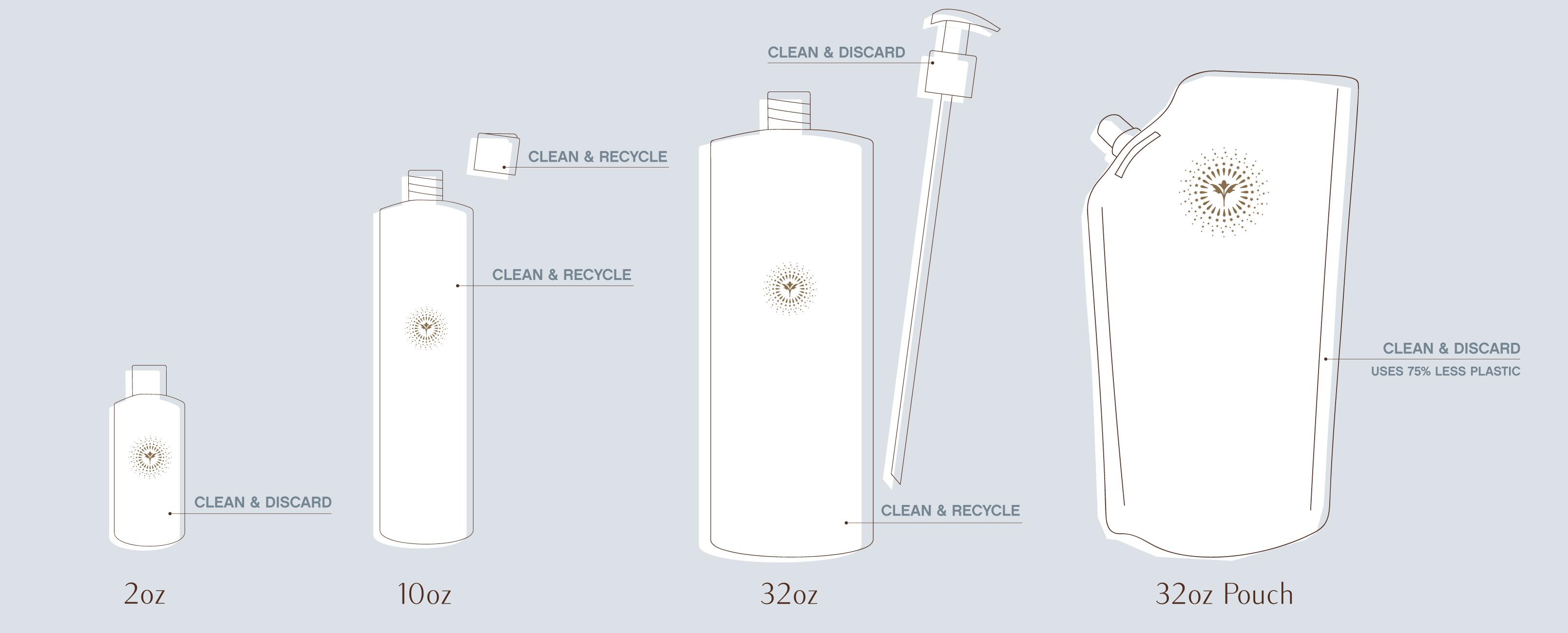 Ingredient graphic. Brand sustainability infographic. Product benefits social ad. Educational flyers. Custom one-line illustrations integrated into sustainability infographic. Product selection flowchart concept. Recycling illustrations.