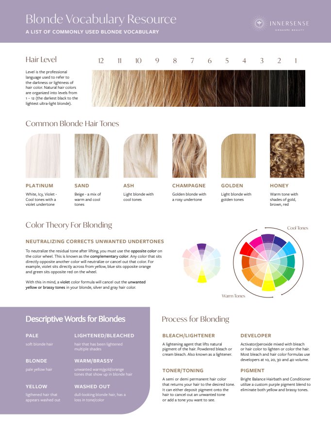 Educational chart for salon professionals and consumer channels.